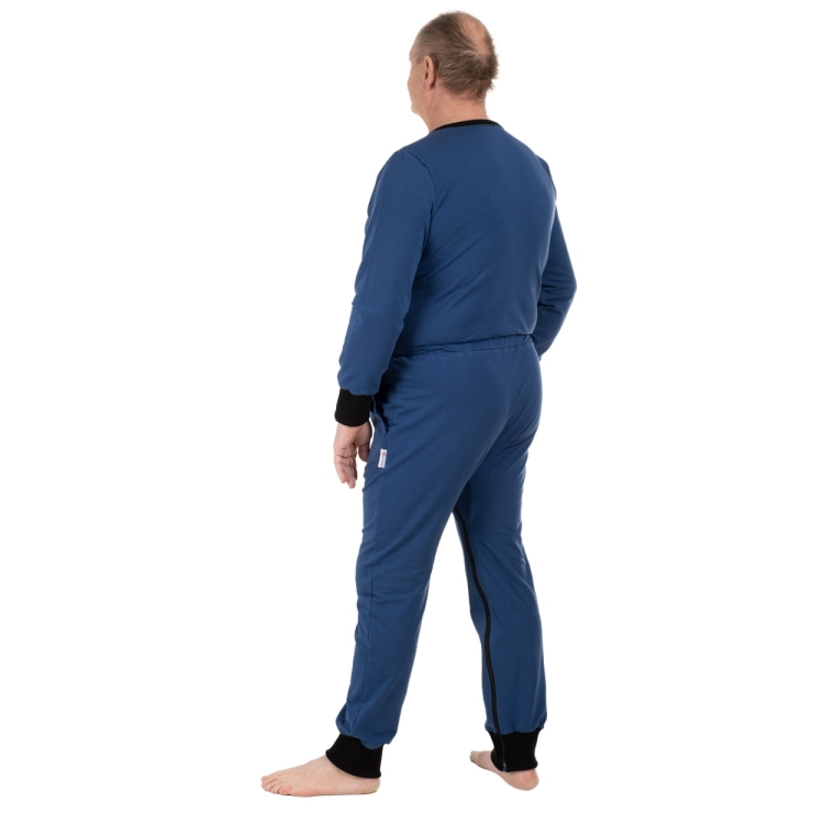 Die Mehrfachplatzierung von Reißverschlüssen (Kunststoff) / Edelstahl / macht die Bekleidung an die Bedürfnisse und Erkrankungen von gehenden und liegenden Menschen anpassbar.