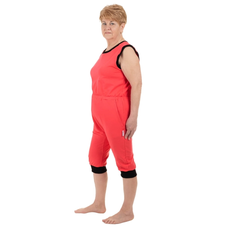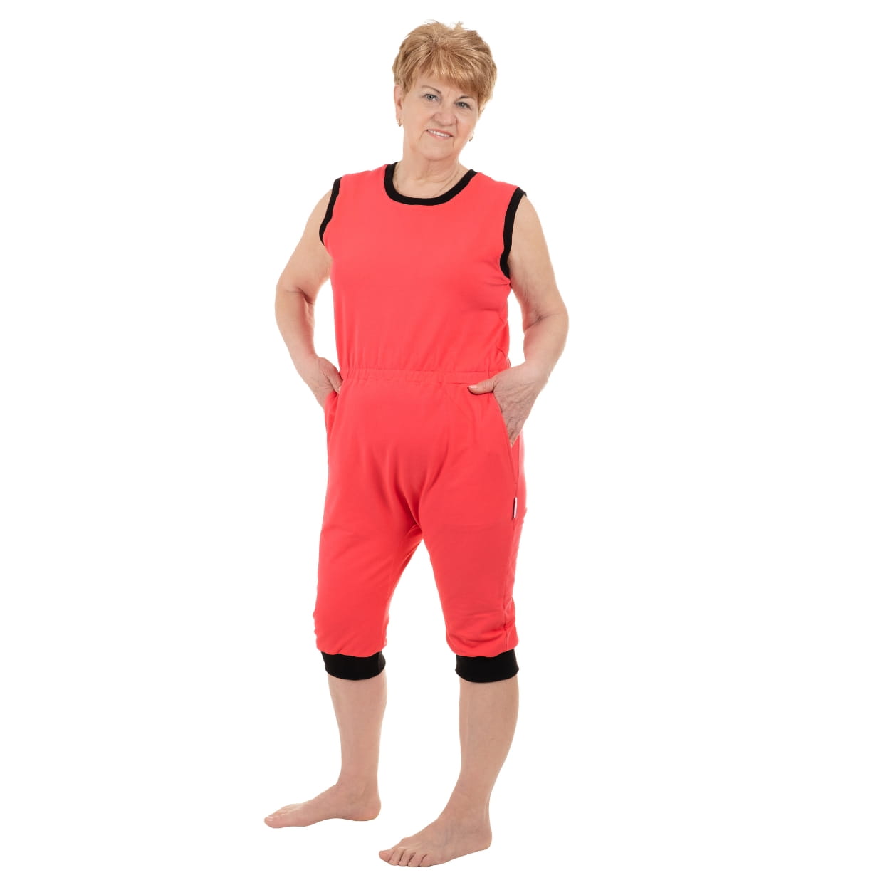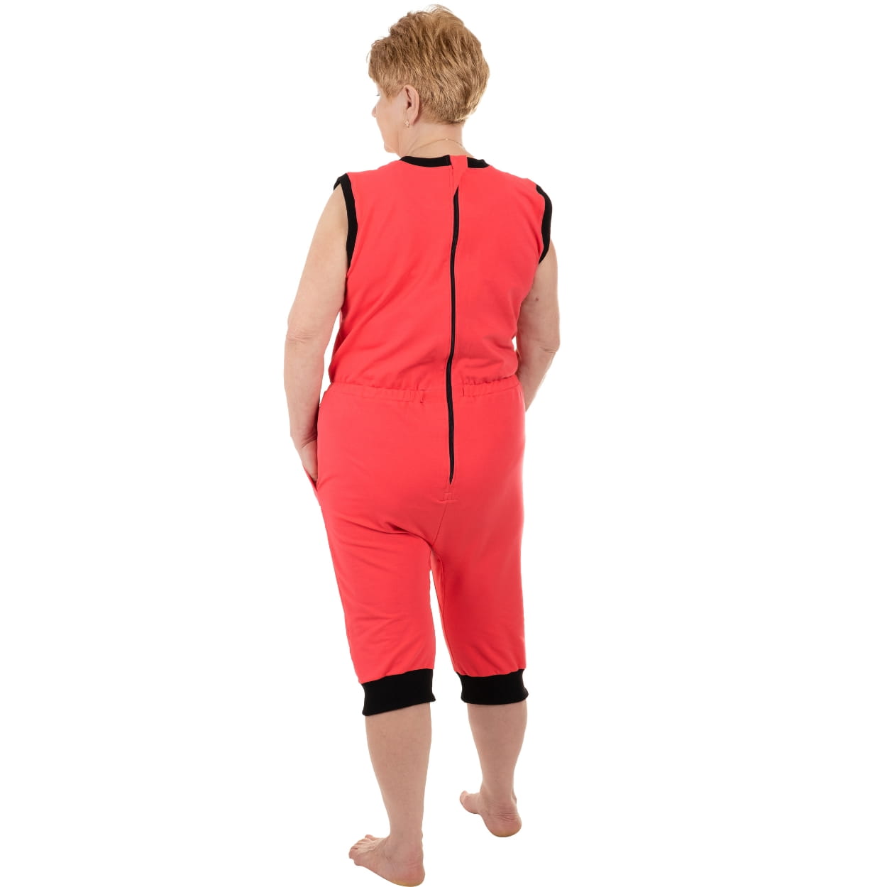 Body dla dorosłych - bez rękawów, zamek z tyłu, krótkie nogawki ze ściągaczami bez zamka w kroku z gumą ściągającą oraz kieszeniami